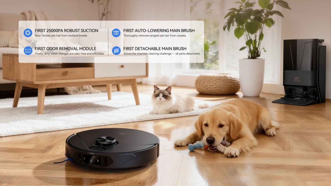 Months of redesign followed — until the world’s first detachable brush chamber and an enhanced 25,000Pa suction system emerged, enabling the robot to clean both the floor and itself with unmatched efficiency.