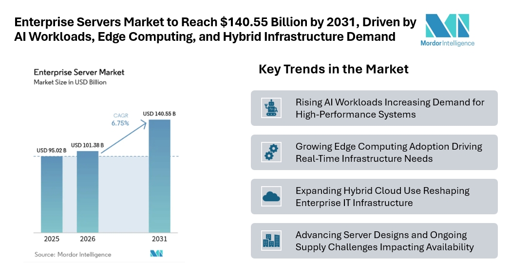 Enterprise Servers Market to Reach $140.55 Billion by 2031, Driven by AI Workloads, Edge Computing, and Hybrid Infrastructure Demand