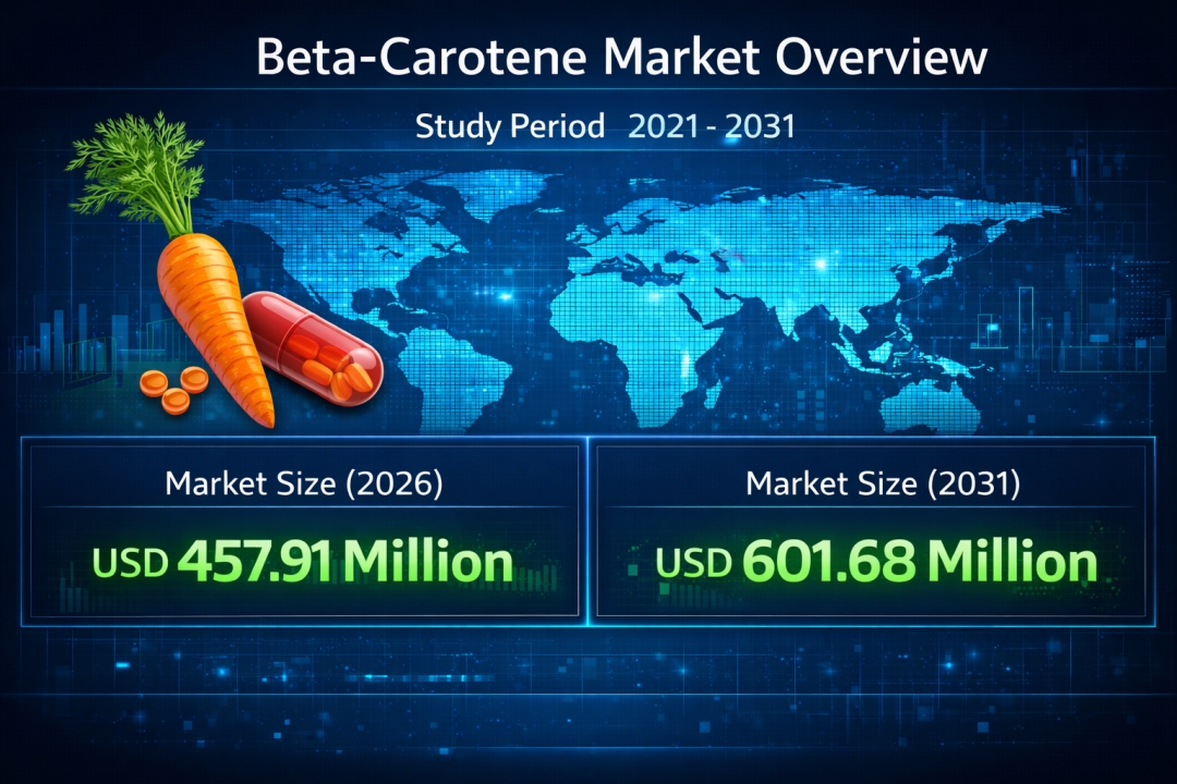 According to Mordor Intelligence, the beta carotene market size is witnessing steady expansion as nutrition awareness, regulatory backing, and clean-label adoption continue to influence ingredient demand. The market is estimated at USD 457.91 million in 2026 and is projected to reach USD 601.68 million by 2031, growing at a CAGR of 5.62% during the forecast period.