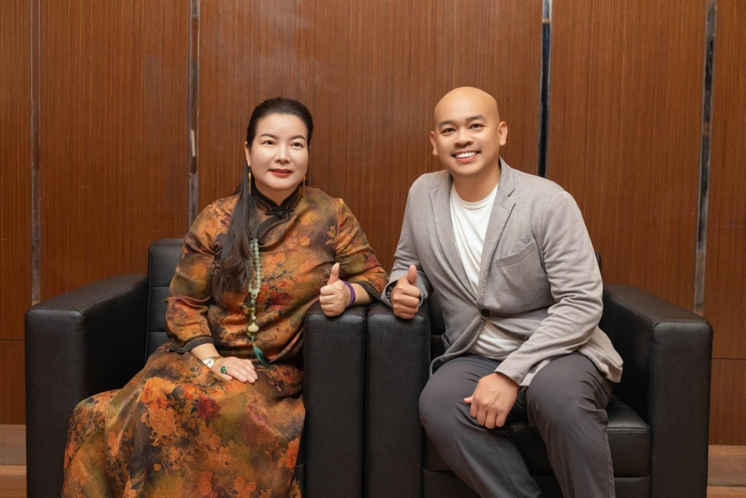 Lucas Goh with Yang Yunnan Laoshi, wife of Zhou Wen Qiang, at an event in October 2025.
