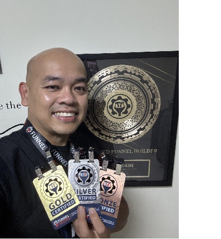 Lucas Goh did not become an award-winning certified funnel builder overnight. His journey through the ClickFunnels certification ecosystem tells the story of someone who earned every level through measurable results. The Bronze Certified Funnel Builder badge came at the one-thousand-dollar revenue mark. Silver followed at ten thousand dollars. And the Gold Certified Funnel Builder designation — reserved for funnel builders who have generated at least one hundred thousand dollars in revenue — cemented his standing as one of the top ClickFunnels experts in Asia.